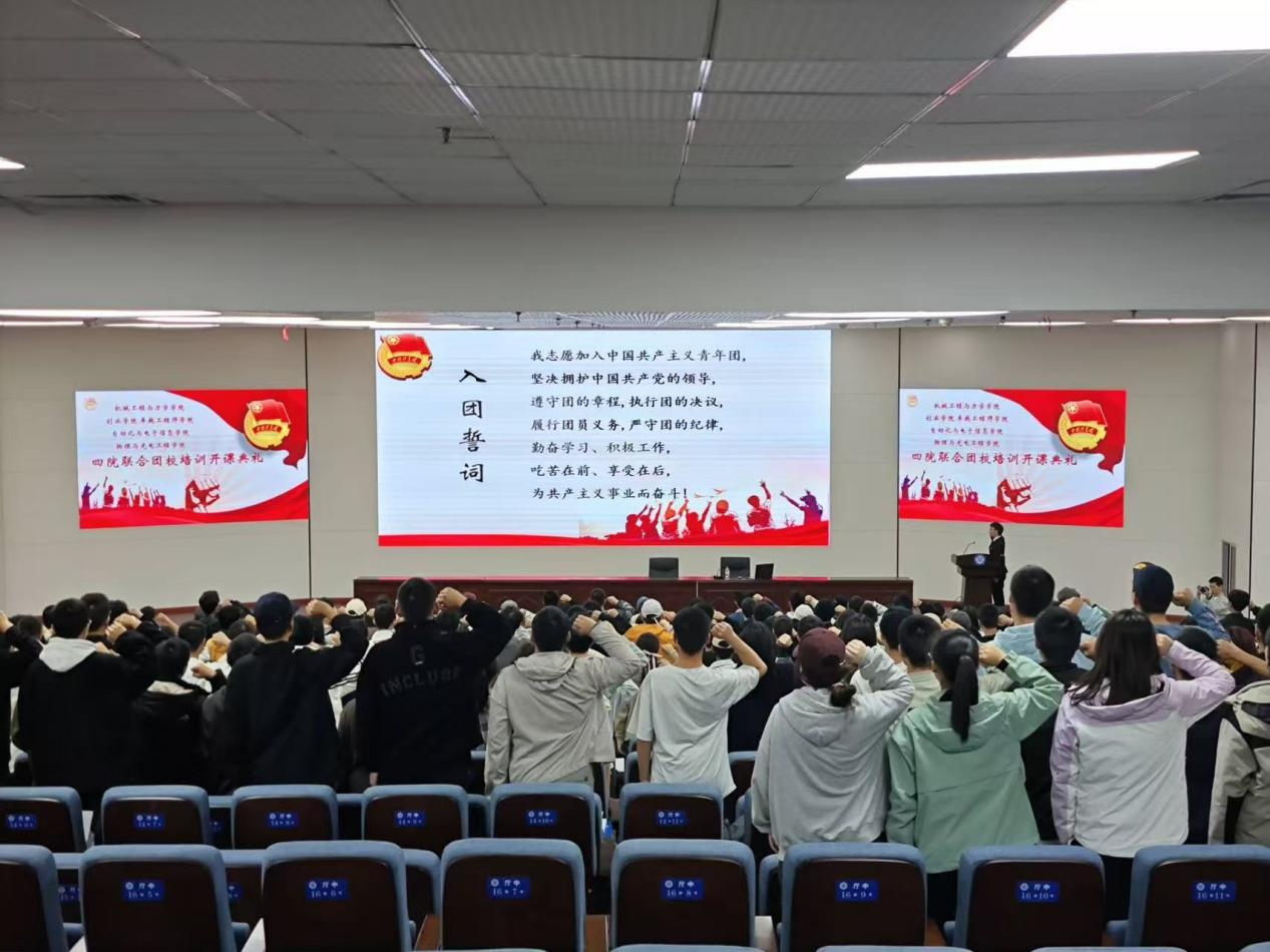 典礼伊始,全体学员齐声高唱团歌,激昂旋律激荡着每位学员的赤子之心。随后学员们举起右拳庄严宣誓,坚定加入共青团的决心和为共产主义事业奋斗的信念。主持人强调了团校纪律,包括不得无故缺勤、上课违纪及考试作弊等,要求共同维护良好的学习环境。