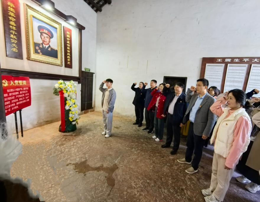 在故居堂屋,全体党员列队肃立,面向鲜红党旗庄严宣誓。铿锵有力的誓言回荡在青砖黛瓦之间,进一步强化了党员的身份认同与使命担当。宣誓结束后,大家围绕将军的廉洁风范、崇高党性,结合落实中央八项规定精神等内容开展现场交流,在思想碰撞中增强了纪律意识与党性修养。